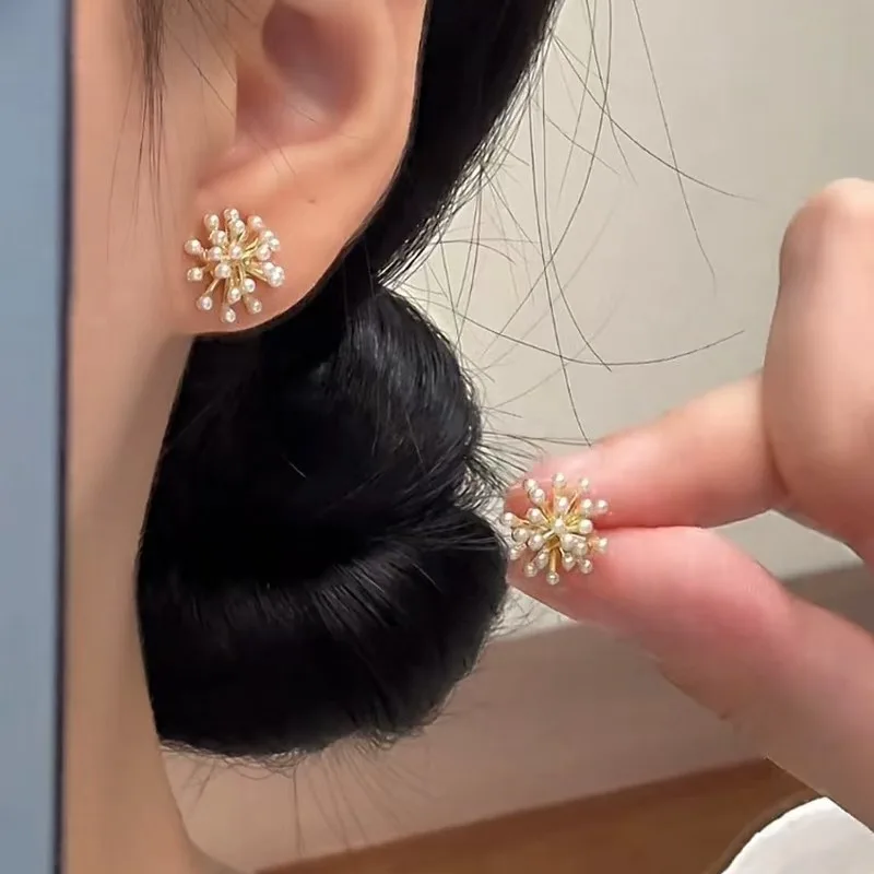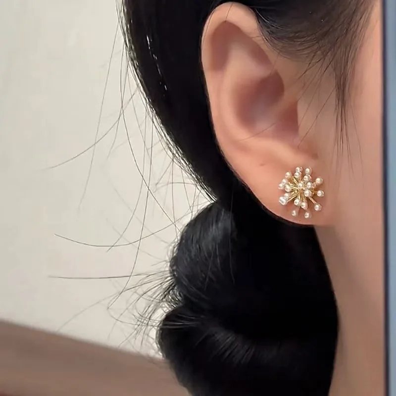 Wholesale Trendy Geometric Pearl Brass 14K Gold Plated Women's Stud Earrings, Simple Earrings, Versatile Earrings